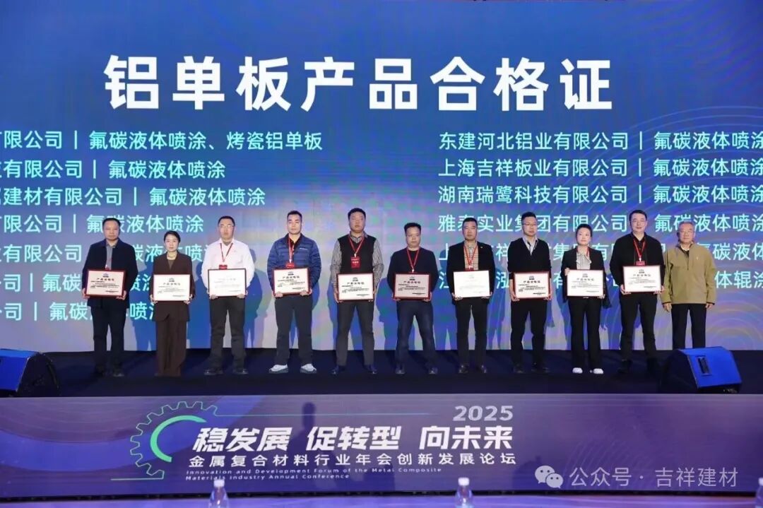 近日,以“穩(wěn)發(fā)展、促轉(zhuǎn)型、向未來”為主題的2025年度金屬復合材料行業(yè)年會創(chuàng)新發(fā)展論壇在徐州隆重舉行。作為行業(yè)內(nèi)的年度盛會,本次大會匯聚了全國頂尖的企業(yè)代表與技術(shù)專家,共同探討行業(yè)發(fā)展趨勢與未來藍圖。在這場高規(guī)格的行業(yè)盛事中,山東吉祥裝飾建材有限公司憑借其深厚的行業(yè)積累與卓越的創(chuàng)新能力,備受矚目。