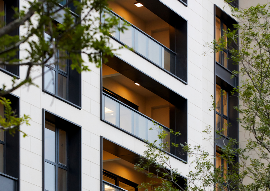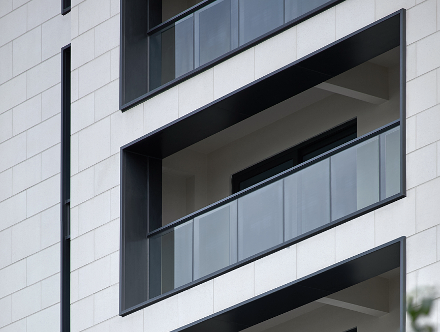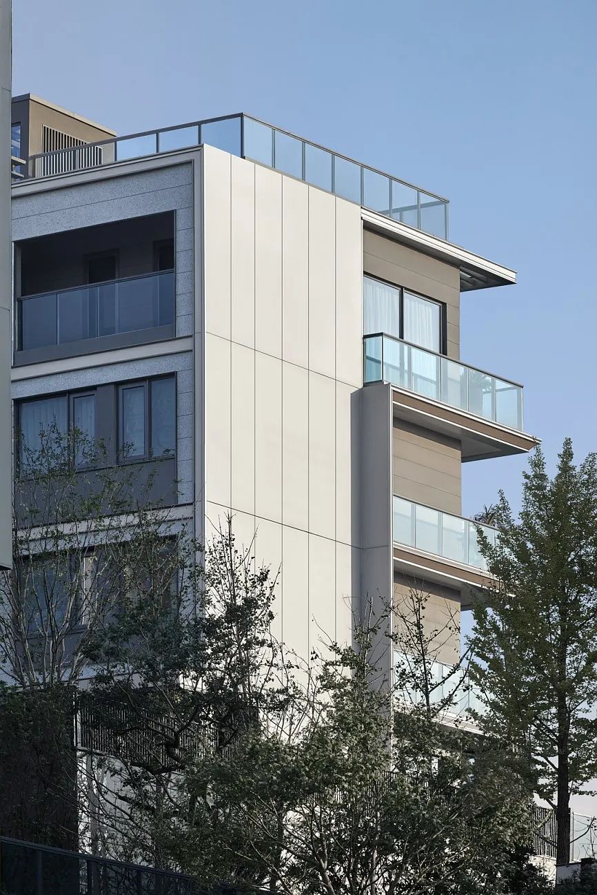 通過滾涂印刷和多次打樣,金麟府選用了效果俱佳、可以假亂真的仿石鋁單板,石材質(zhì)感增添了建筑的細(xì)節(jié)表達和價值感,同時也保證了建筑的整體性。