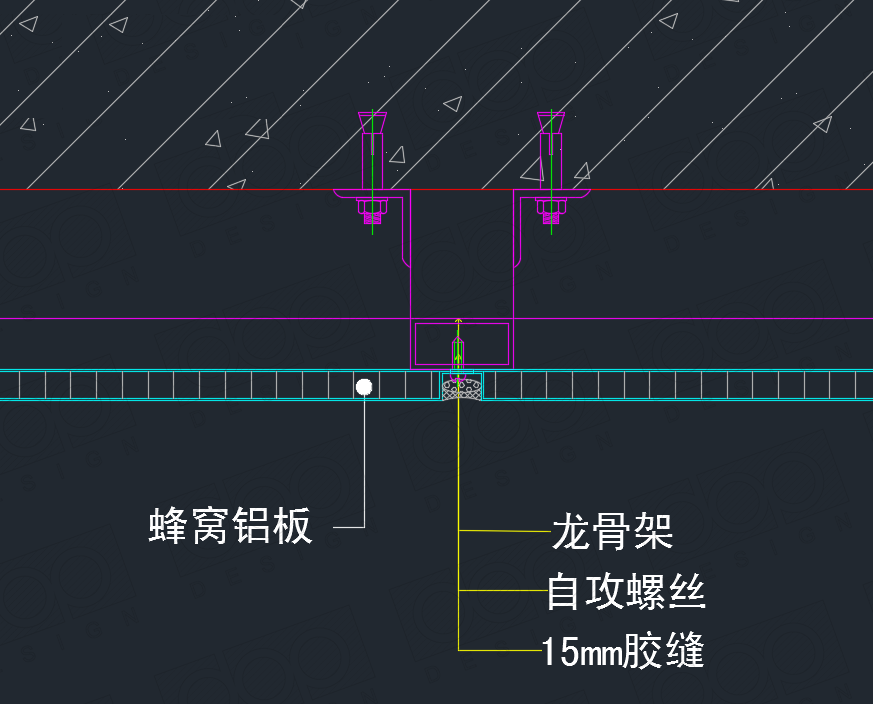 除了干掛外,常見的蜂窩板節(jié)點(diǎn)做法就是“打釘式”做法,節(jié)點(diǎn)如下所示: