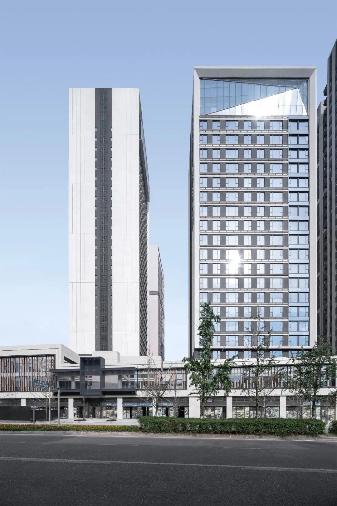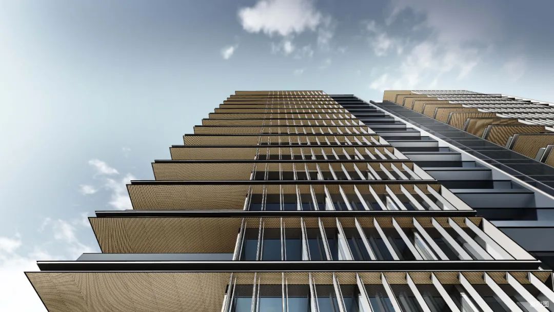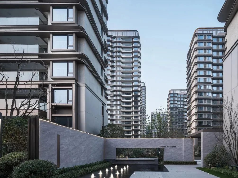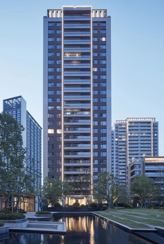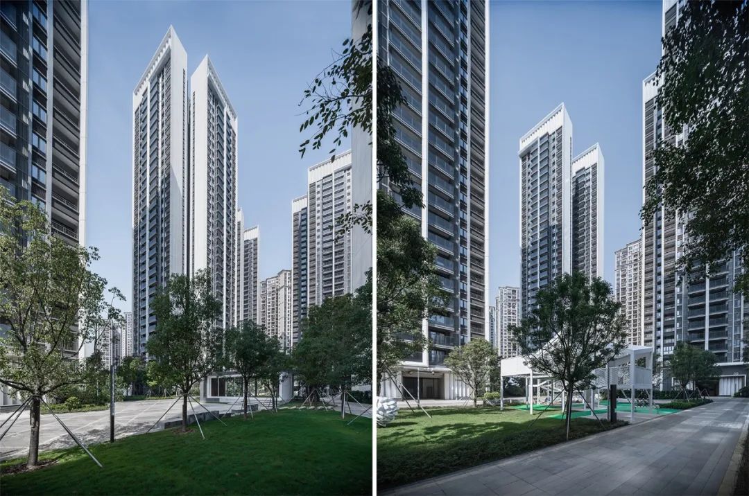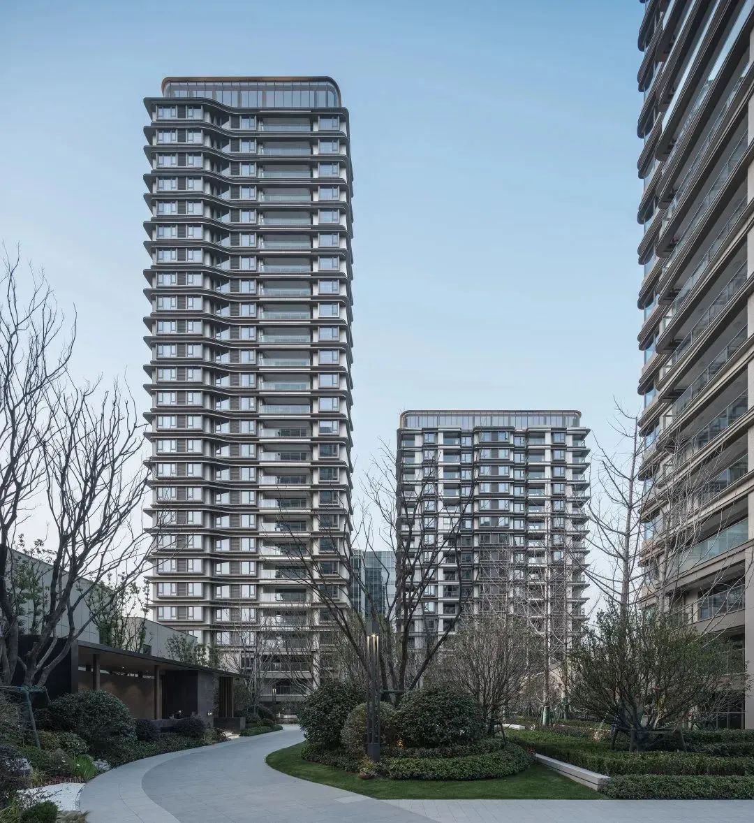 杭州仁恒置地∣香港置地·前灣國(guó)際社區(qū)住宅屋頂?shù)拇┛卒X板強(qiáng)調(diào)建筑的藝術(shù)感和方向性。