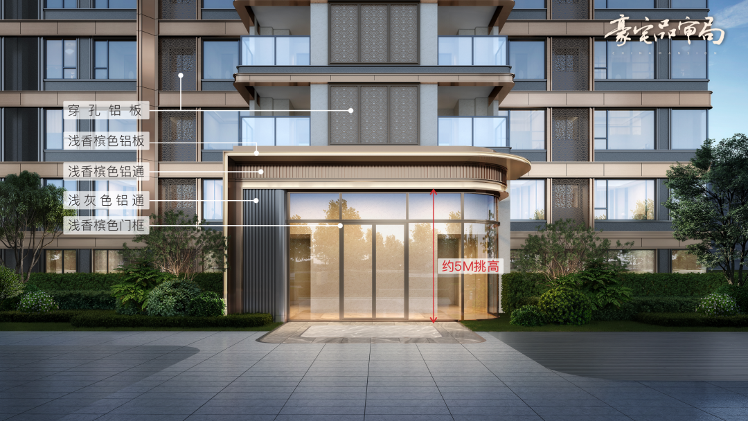香港置地·西元項(xiàng)目出現(xiàn)在主立面的鋁單板和鋁制線條在背立面同樣存在,單元門頭由全鋁板包裹。