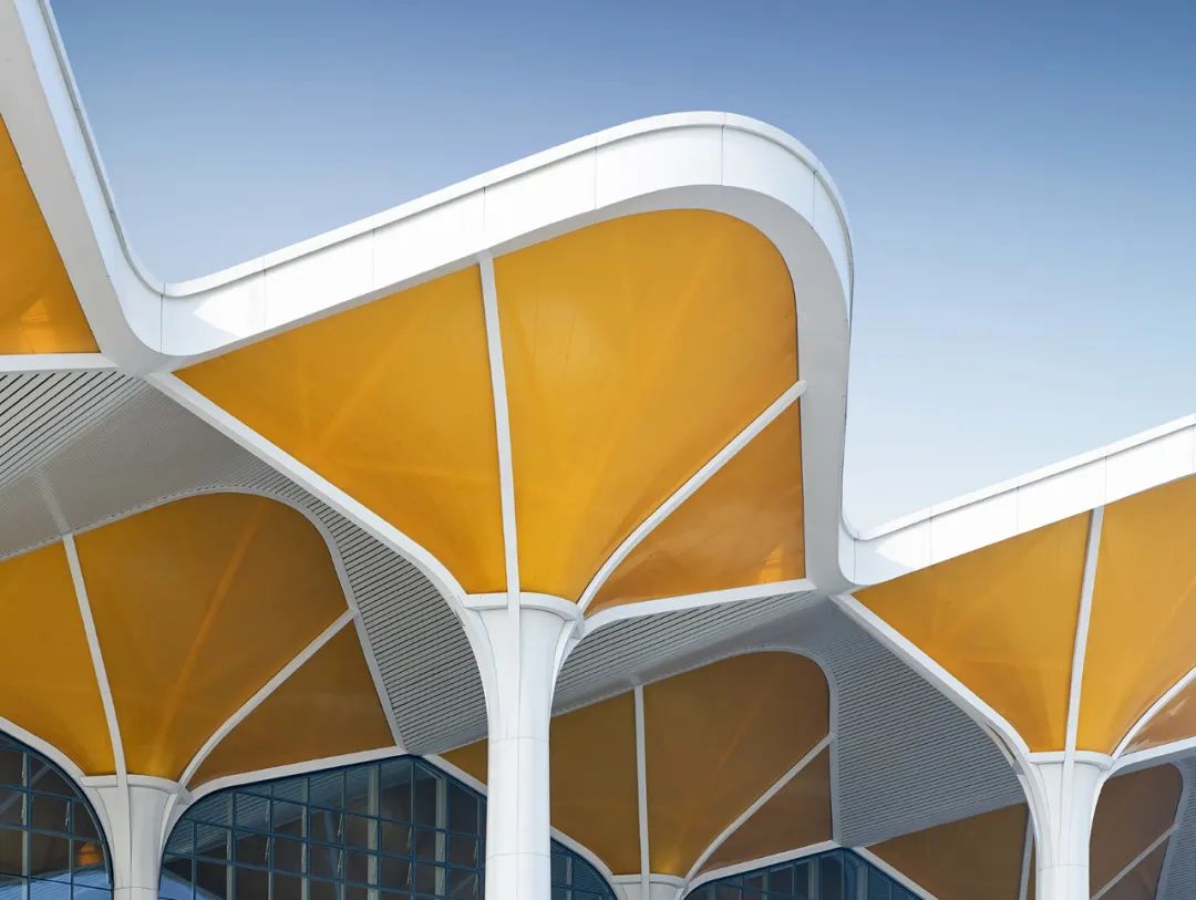 隨著現代建筑業(yè)的發(fā)展和建筑技術的不斷進步,人們對建筑物的要求,在追求設計風格和建筑效果的同時,更多的強調建筑的功能、建筑的物理性能以及節(jié)能和環(huán)保,而公共類建筑對大跨度空間的需求越來越高,人們在不斷地探索適應這種需求的建筑技術和新型材料。有一種建筑新材料跟傳統材料相比,輕盈而柔韌,透光且環(huán)保,在設計師手下呈現出令人流連忘返的夢幻美景。今天就讓我們一起了解這種輕薄透的屋/墻面材料:ETFE材料。ETFE的中文名為乙烯-四氟乙烯共聚物,最初是由杜邦公司(DuPont)于1970年代開發(fā)的,目前為止最強韌的氟塑料,在保持了PTFE良好的耐熱、耐化學和電絕緣性能的同時,它的耐輻射、機械性能和加工性能有了很大程度的改善。ETFE膜俗稱“軟玻璃”,是一種輕質、耐熱的薄膜,ETFE膜具有很多其他材料無法比擬的性能,這種材料得到了許多建筑師的認同,它的建筑用途也日益增多起來。我國北京2008奧運工程的國家游泳館(水立方)就是大規(guī)模ETFE氣囊式構造的典范,引起了廣泛的關注。以ETFE薄膜制成屋面和墻體的優(yōu)勢在于:1、質輕,ETFE密度為1.73~1.77g/cm3,單位面積的ETFE薄膜的重量極輕,只有同等面積玻璃質量的1%。2、ETFE薄膜韌性好、抗拉強度高、不易被撕裂,據測試0.2mm厚度的薄膜其拉伸強度可達到500 N/5cm,拉裂強度可達約1200 N/5cm,接近PTFE的兩倍。ETFE薄膜的延展性大于400%。3、耐候性和耐化學腐蝕性強,其使用壽命據估計可以長達25~30年。4、防火安全性好,ETFE熔融溫度高達200℃,并且不會自燃。5、可見光透過率高,ETFE薄膜可見光透過率高達95%、紫外線透過率高達94%(雙層0.2mm厚度的透明薄膜)。透明的ETFE薄膜作為一種充氣后使用的材料,它可以通過絲網印刷鍍點控制薄膜的透明度,對遮光度和透光性進行調節(jié),有效地利用自然光;它可以通過控制充氣量的多少甚至充入氣體的種類來同時起到保溫隔熱、節(jié)省能源的作用。6、優(yōu)異的自清潔功能,灰塵不易吸附在其表面。7、適應性好,ETFE薄膜幾乎可以加工成任何尺寸和形狀。8、ETFE薄膜可預制成薄膜氣囊,在現場組裝、充氣,無濕作業(yè),施工和維修方便。1、由于彈性大、無剛度,ETFE薄膜常制成氣囊以成型,這就需要準備空壓機器補氣,耗費額外的固定投資及運營費用。2、任何強韌的材料如果太薄就經不起利器的劃傷,雖然薄膜的修補并不復雜,但ETFE薄膜同樣最好避免設置于人體易于接觸的范圍內以減少損壞的幾率。建筑外圍護結構中的膜結構,根據膜結構的成形方式和受力特點一般可以分為:骨架式膜結構、張拉索膜結構、充氣膜結構。骨架式膜結構是鋼或其他材料構成的剛性骨架,具有自然穩(wěn)定性、完整性,膜張拉并置于骨架上構成骨架式膜結構,形態(tài)有平面形、單曲面形和以鞍形為代表的雙曲線形。骨架式膜