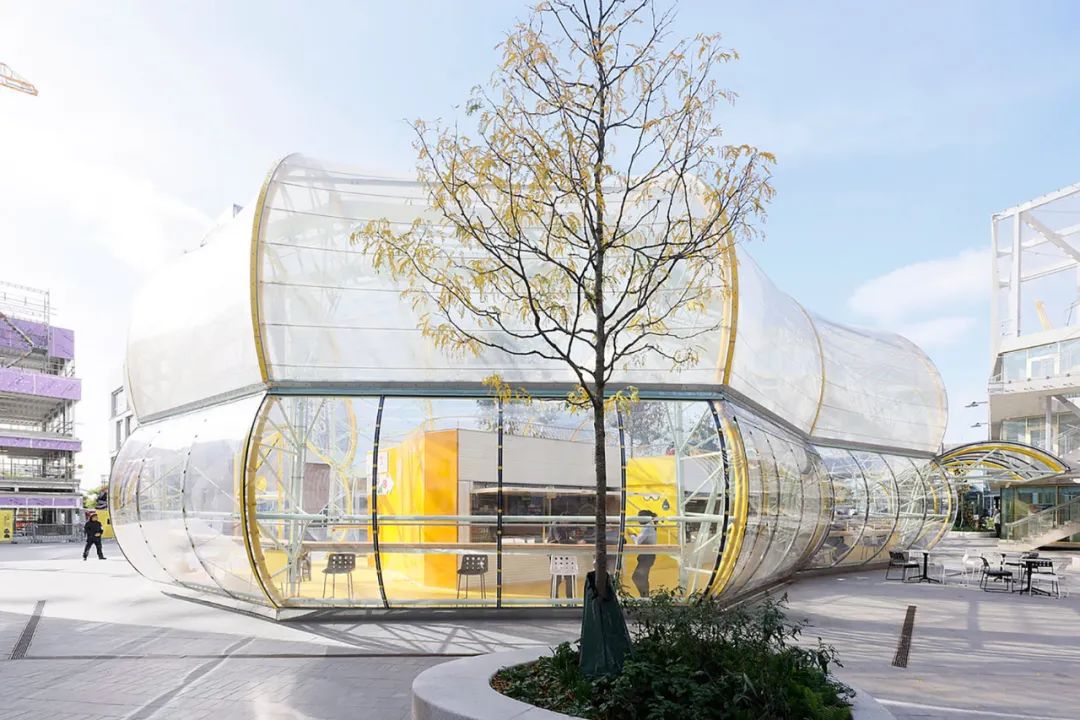 “market”- 格林威治設計區(qū)食堂位于通往格林威治半島的主要人行道路上,憑借其優(yōu)越的地理位置受到當地居民與游客的歡迎。建筑自身保持了最大的透明度,直觀地向人們展示著其內部的活動場景。