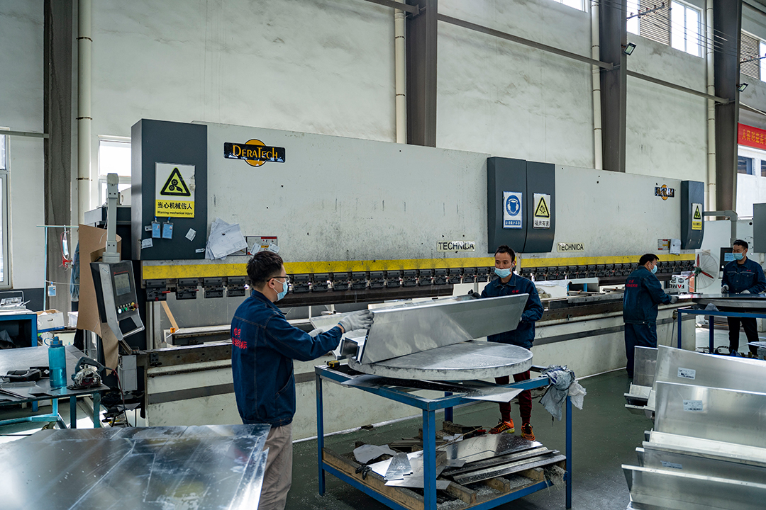 什么是氟碳鋁單板?氟碳鋁單板是以鋁合金板材為基材,經(jīng)開(kāi)料、數(shù)控折彎、焊接、打磨、拋光等工序加工成客戶所需要的板型。然后經(jīng)前處理(5道清水去污、鉻化處理),烘干,上底漆,上面漆,再經(jīng)240度高溫烘烤,完成氟碳鋁單板的生產(chǎn)。