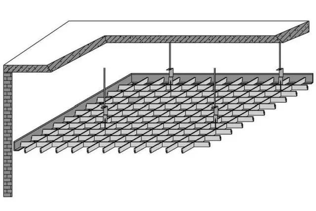 按設(shè)計(jì)要求采用金屬膨脹螺栓或射釘固定吊頂連接,或直接固定鋼筋吊桿、鍍鋅鐵絲及扁鐵吊件等。局部格柵的拼裝,單體與單體、單元與單元,作為格柵吊頂?shù)母挥许嵚筛械膱D案構(gòu)成因素,必要時(shí)應(yīng)盡可能在地面拼裝完成,然后再按設(shè)計(jì)要求的方法懸吊。