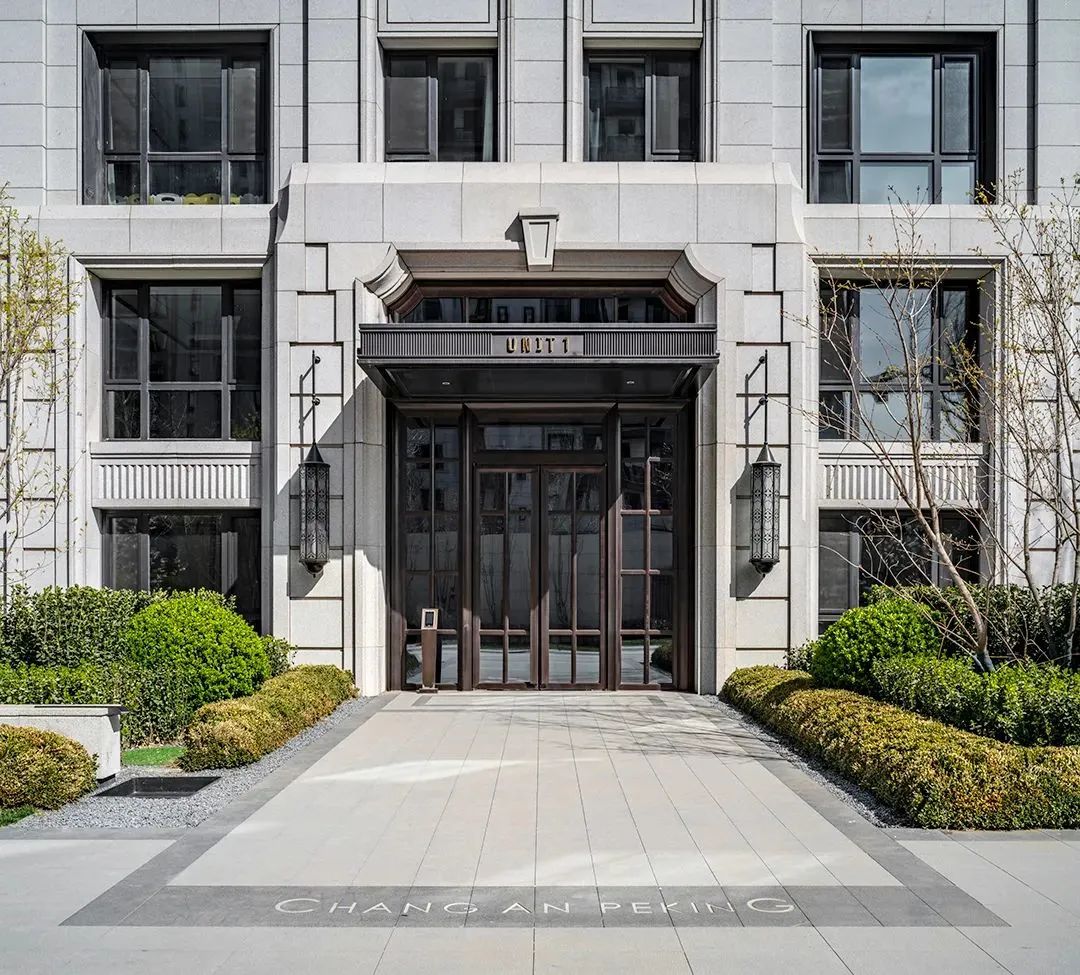 雙層高精裝大堂以古典建筑比例為基調(diào),強調(diào)直線和弧線的結(jié)合,利用石材凹與凸的變化豐富視覺效果,無柱金屬雨蓬及復古燈飾進一步增強精致感。