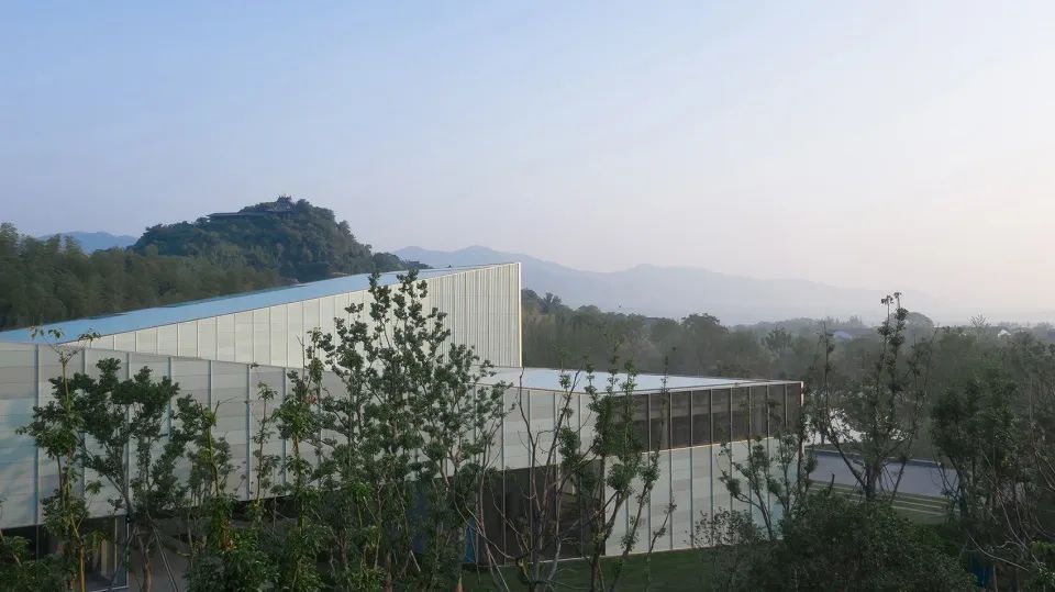 宜興的雅達(dá)劇院外立面以“陶”為主題,采用當(dāng)?shù)責(zé)频?/span>釉面陶板。天青色釉彩具有凝脂的光澤,隨著自然光線和觀察距離的變化,建筑也呈現(xiàn)出微妙、動人的色彩變化。