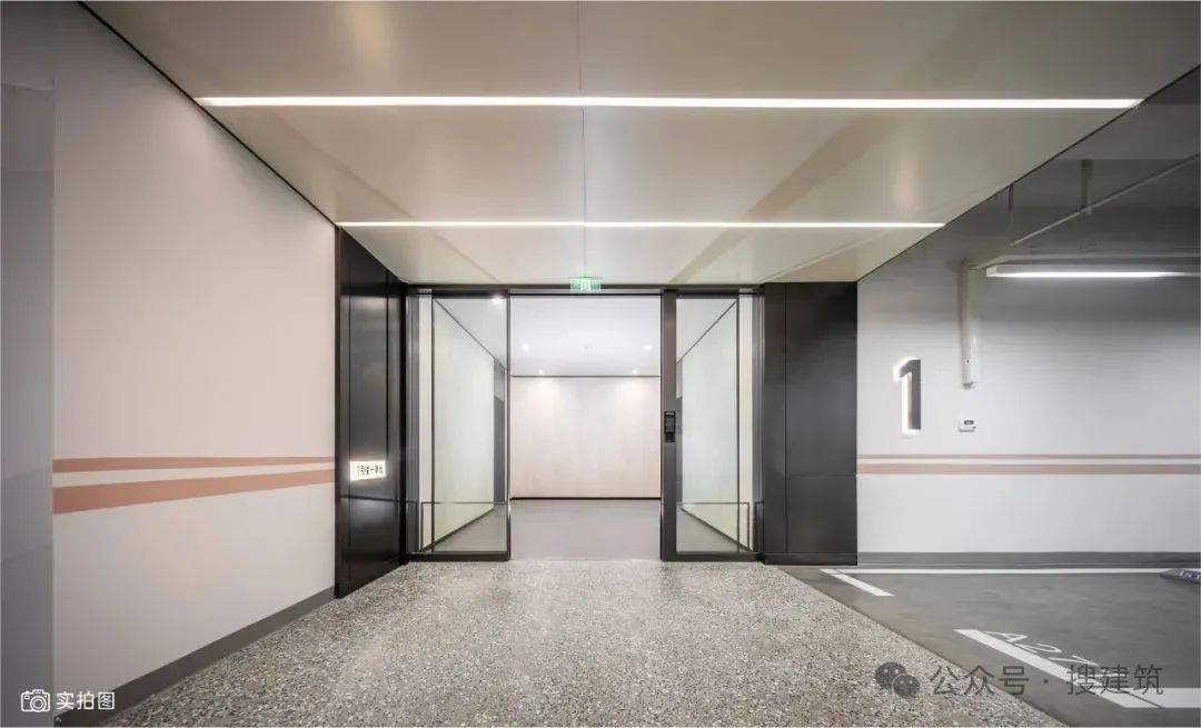 西安融創(chuàng)海逸長洲疊拼地下車庫大堂,進(jìn)行了進(jìn)一步的升級,大堂入戶門采用拉絲不銹鋼搭配中空玻璃簡約、有質(zhì)感,彰顯品質(zhì)且經(jīng)久耐用、抗磨損,線條性與質(zhì)感更加凸顯。