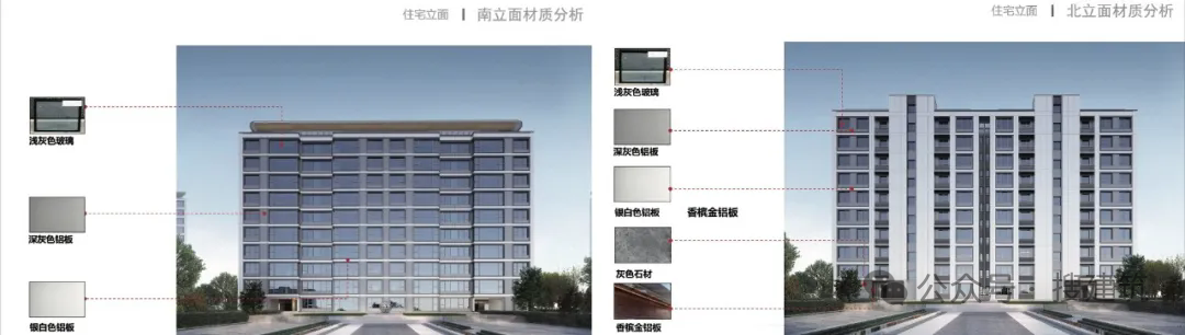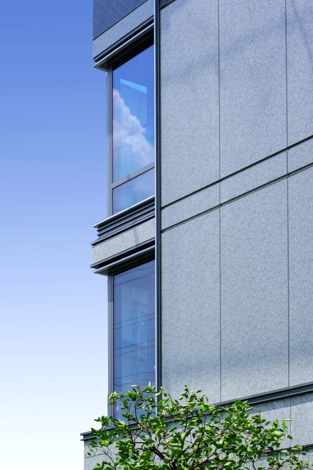 不僅南北立面,是造價昂貴的鋁板外,就連易于忽視的兩側(cè)山墻,同樣也是鋁板等高階型材干掛。