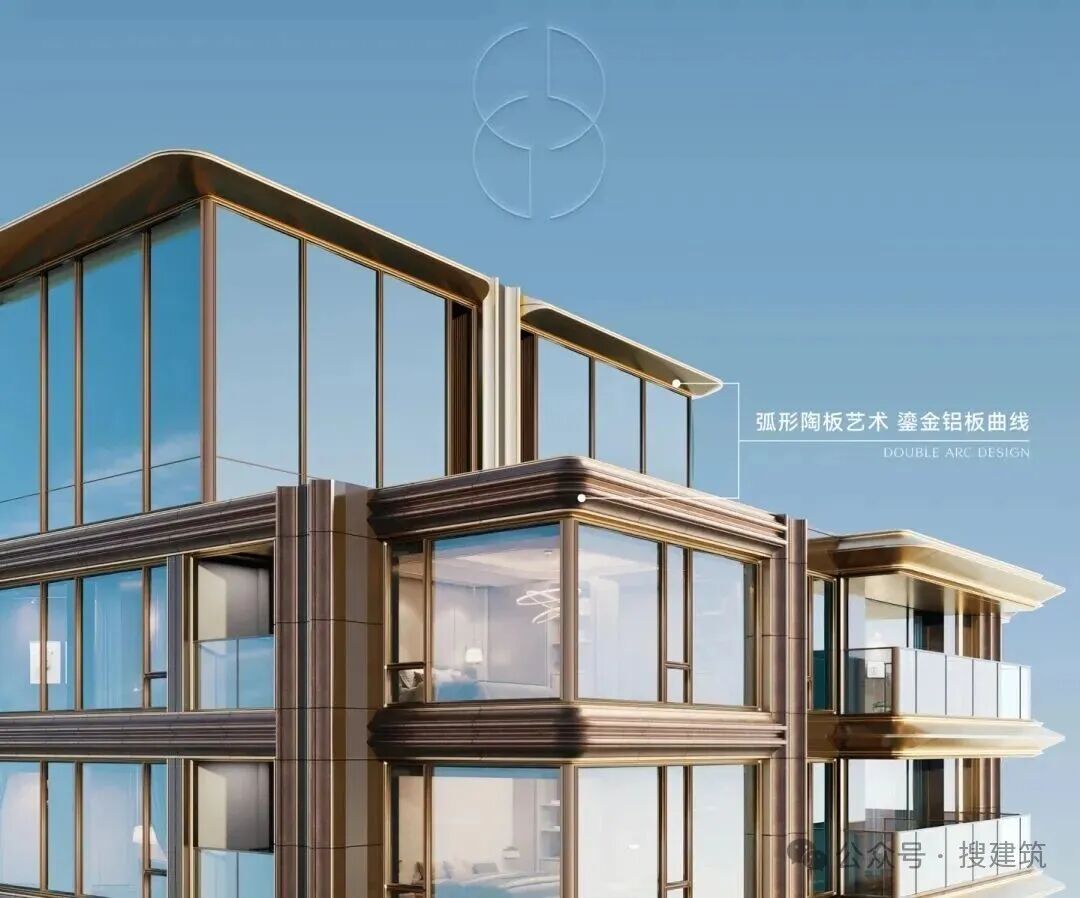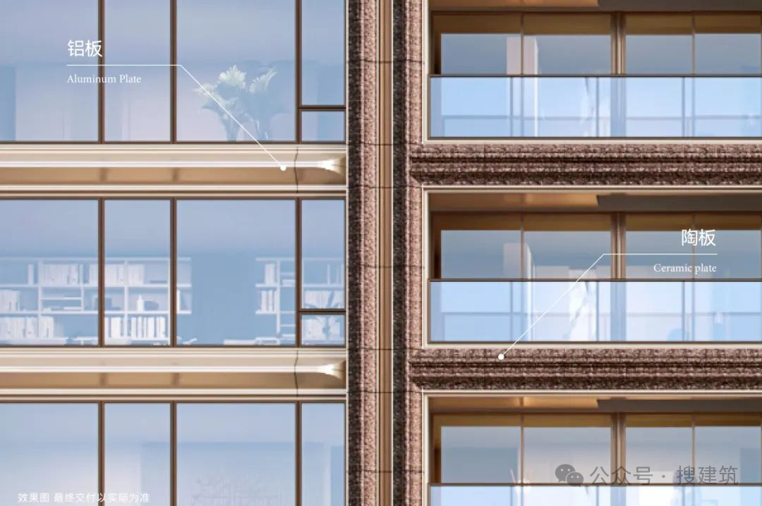 中建·玖上瑯宸的建筑外立面設(shè)計(jì)汲取豫園“金聲玉振”靈感,部分選用約1150℃高溫?zé)贫删暗骆?zhèn)稀有陶板,打造“金鑲玉制”的海派先鋒立面,搭配石材與鋁板,讓室內(nèi)外景致無(wú)界交融。