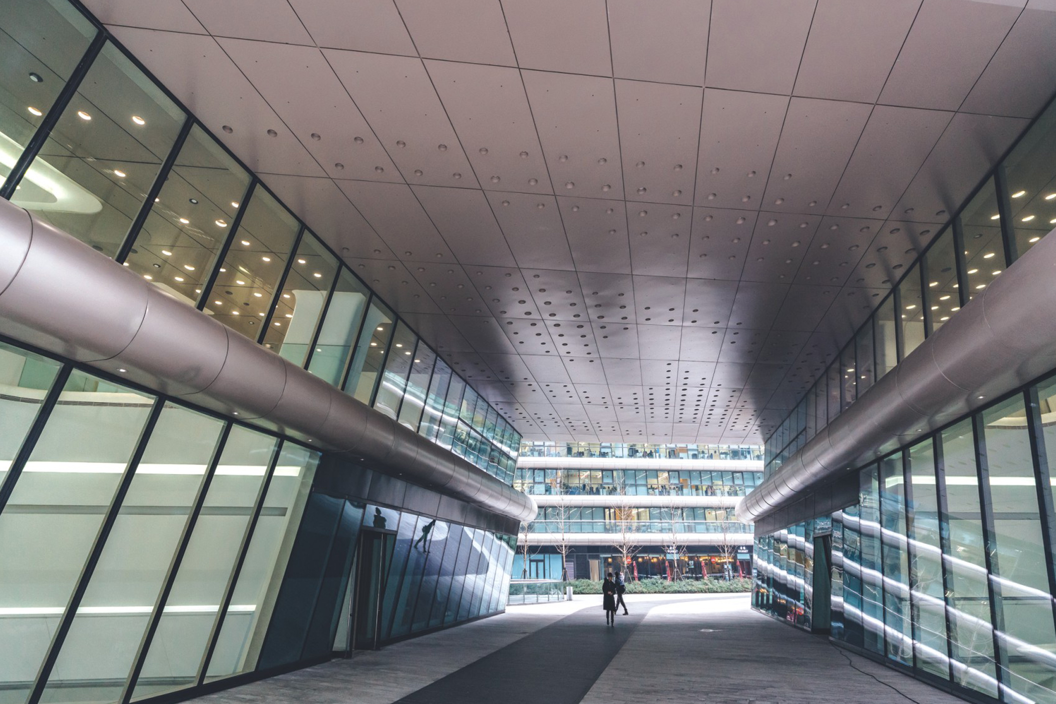 鋁單板幕墻采用優(yōu)質(zhì)高強(qiáng)度鋁合金板材,其常用厚度為2.0,2.5,3.0,型號(hào)為1100系列3003系列,狀態(tài)為H24。常規(guī)材料最大尺寸為1300mmx4000mm。其構(gòu)造主要由面板加強(qiáng)筋和角碼組成。角碼可直接由面板折彎、沖壓成型,也可在面板的折邊上鉚裝角碼成型。加強(qiáng)筋與板面后的電焊螺釘連接,使之成為一個(gè)牢固的整體,極大增強(qiáng)了鋁單板幕墻的強(qiáng)度與剛性,保證了長期使用中的平整度及抗震能力。如果需要隔音保溫,可在鋁板內(nèi)側(cè)安裝高效的隔音保溫材料。