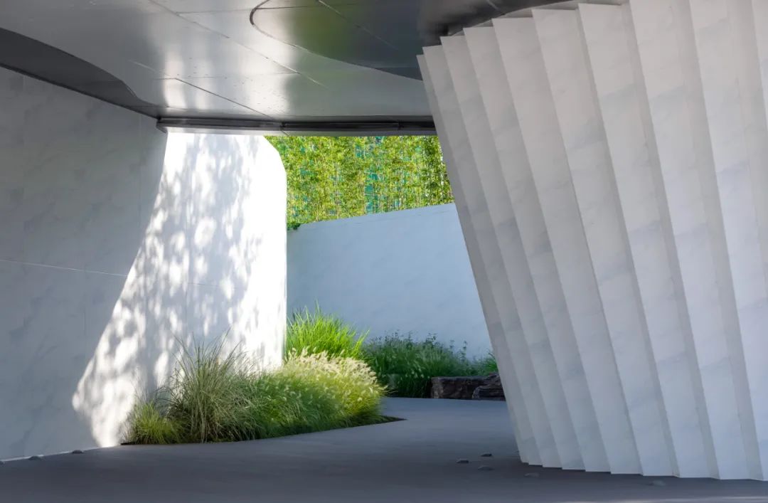 仿石鋁板——入口獨具亮點的設(shè)計形式即是這個如書頁般翻動的褶皺,它不僅具備石料的厚重感還兼具“靈活”的特性且更具有性價比。