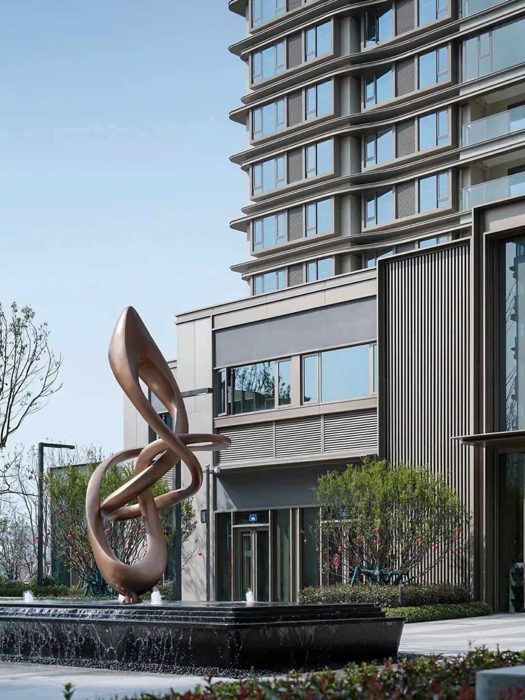 杭州仁恒置地∣香港置地·前灣國(guó)際社區(qū)住宅屋頂?shù)拇┛卒X板強(qiáng)調(diào)建筑的藝術(shù)感和方向性。