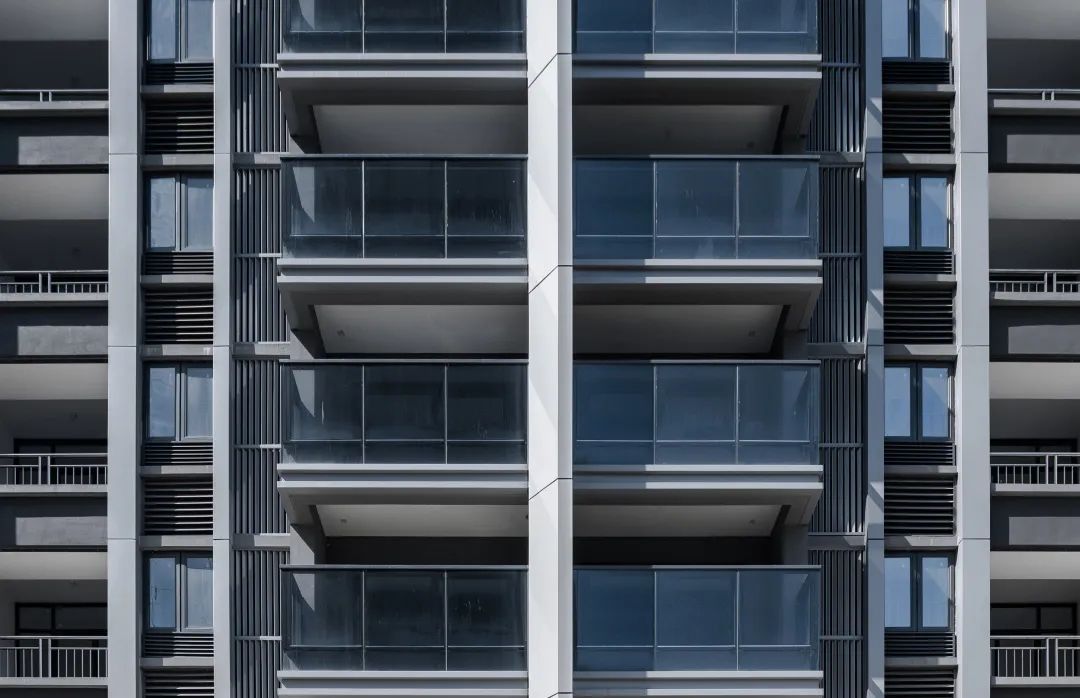 潤(rùn)達(dá)豐控股 濱江·天樾建筑側(cè)面采用米黃色真石漆與深灰色涂料和深灰色穿孔鋁板結(jié)合,虛與實(shí)的對(duì)比將建筑映襯得干凈、純粹而又輕盈。