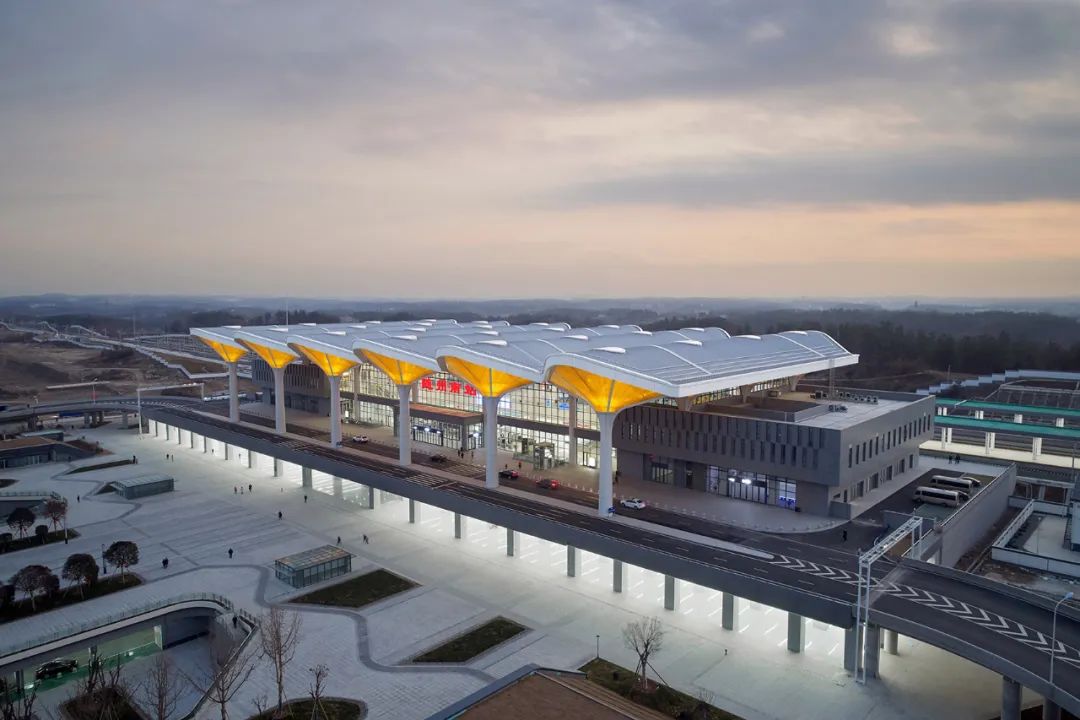 當你乘車來到隨州南站的高架落客平臺,仿佛置身于銀杏樹的叢林,這個擋風遮雨的車站半室外空間會給你留下深刻印象。