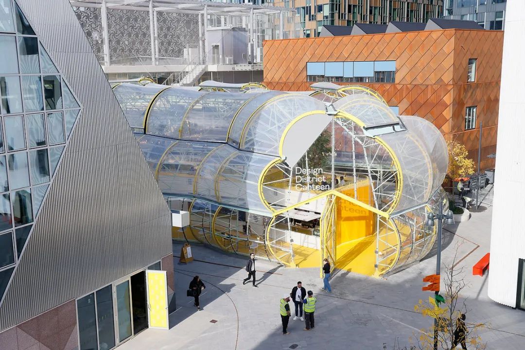 “market”- 格林威治設計區(qū)食堂位于通往格林威治半島的主要人行道路上,憑借其優(yōu)越的地理位置受到當地居民與游客的歡迎。建筑自身保持了最大的透明度,直觀地向人們展示著其內部的活動場景。