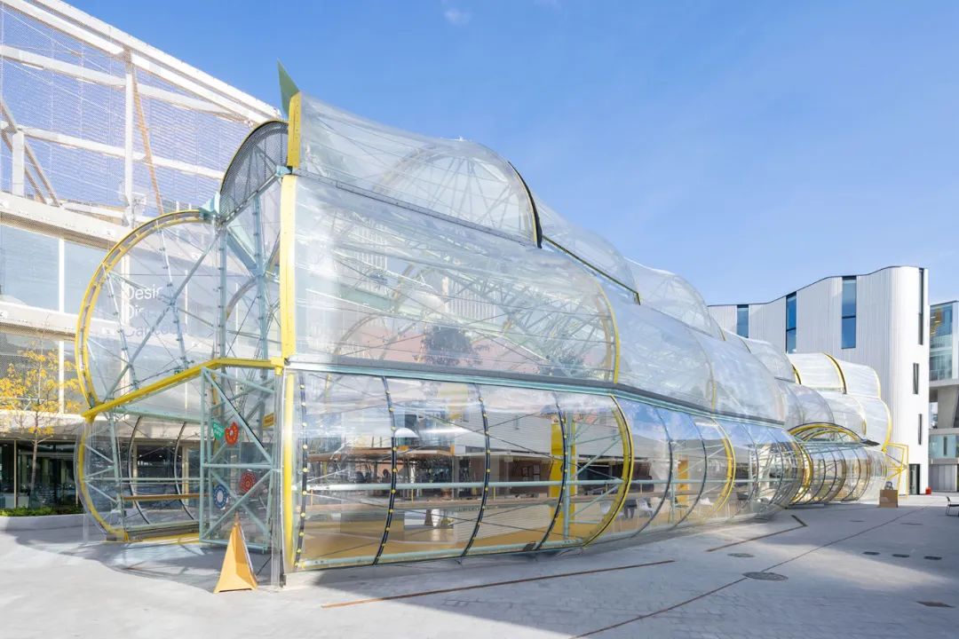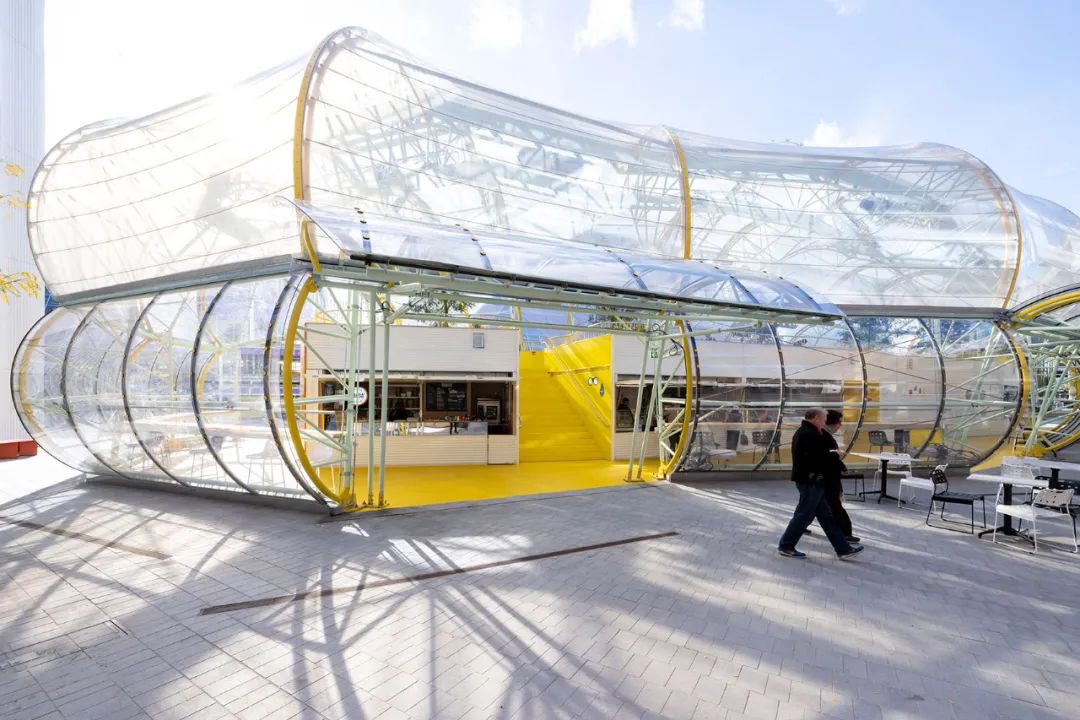 輕盈的金屬結構和透明的承重ETFE膜覆蓋著中央脊柱 ?Iwan Baan