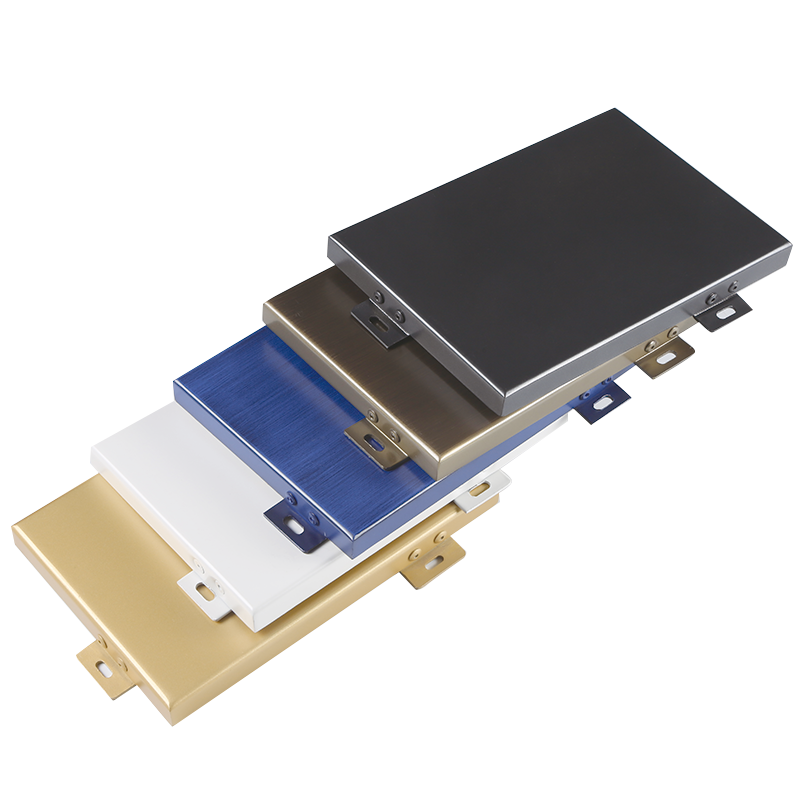鋁單板是采用優(yōu)質(zhì)鋁合金板材為基材,再經(jīng)數(shù)控折彎等技術(shù)成型,表面噴涂裝飾性涂料的一種新型建筑裝飾材料。鋁單板主要由面板、加強筋和角碼等部件組成。角碼可直接由面板折彎、沖壓成型,也可在面板的小邊上鉚裝角碼成型。加強筋與板面后的電焊螺釘連接,使之成為一個牢固的整體,極大增強了鋁單板幕墻的強度與剛性,保證其長期使用中的平整度及抗風抗震能力。如果需要隔音保溫,可在鋁板內(nèi)側(cè)安裝高效的隔音保溫材料。