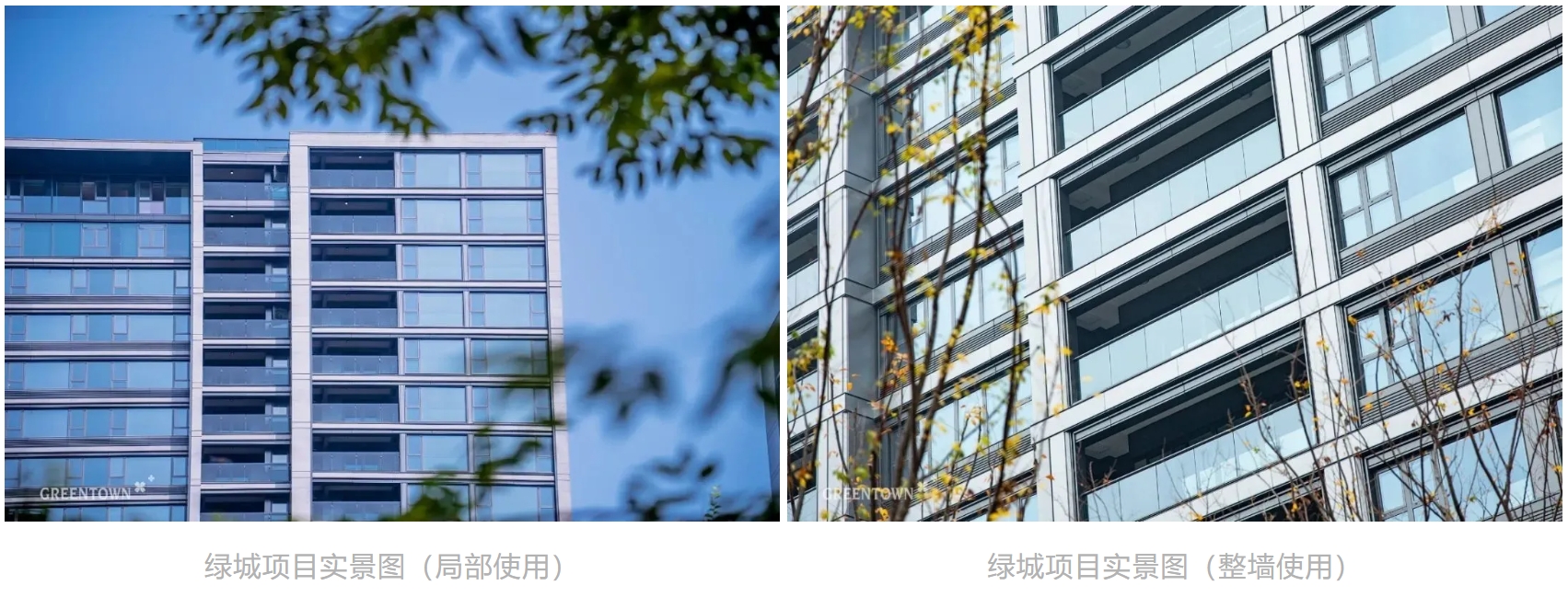 綠城現(xiàn)代風格產(chǎn)品大多使用鋁板搭配玻璃,鋁板幕墻主要用于立面線條的勾勒,或整墻的裝飾。