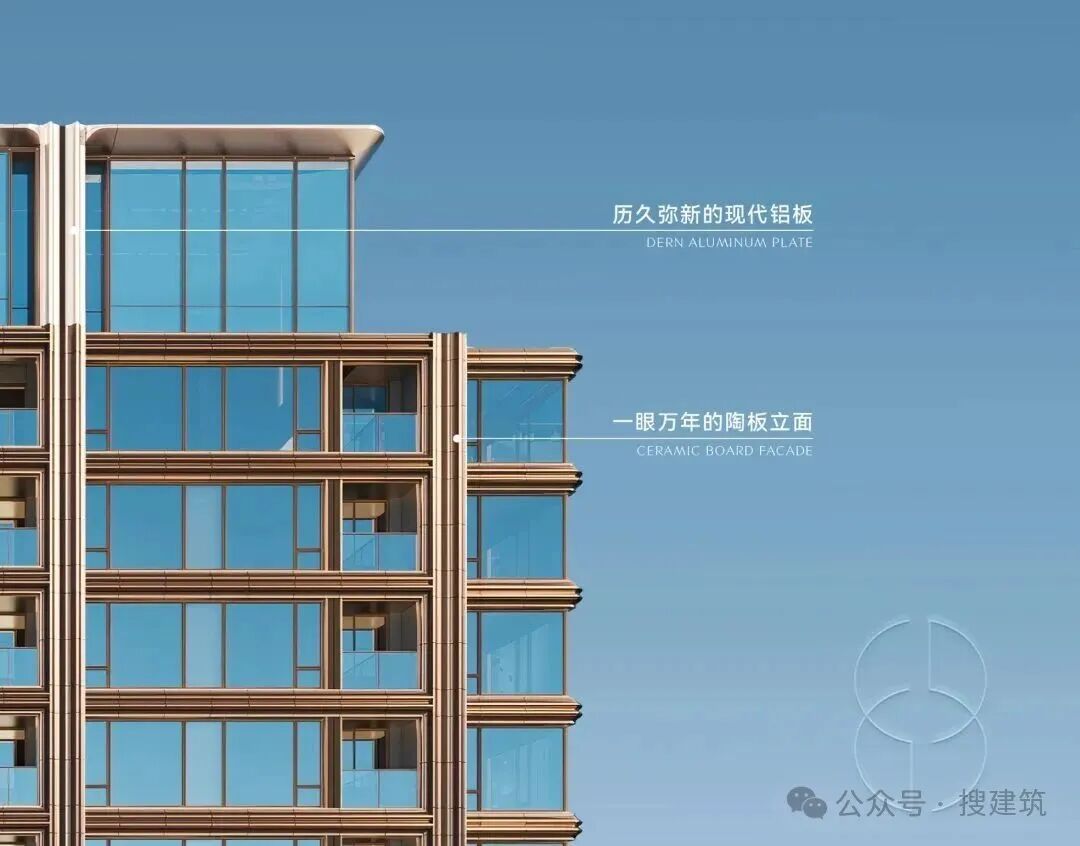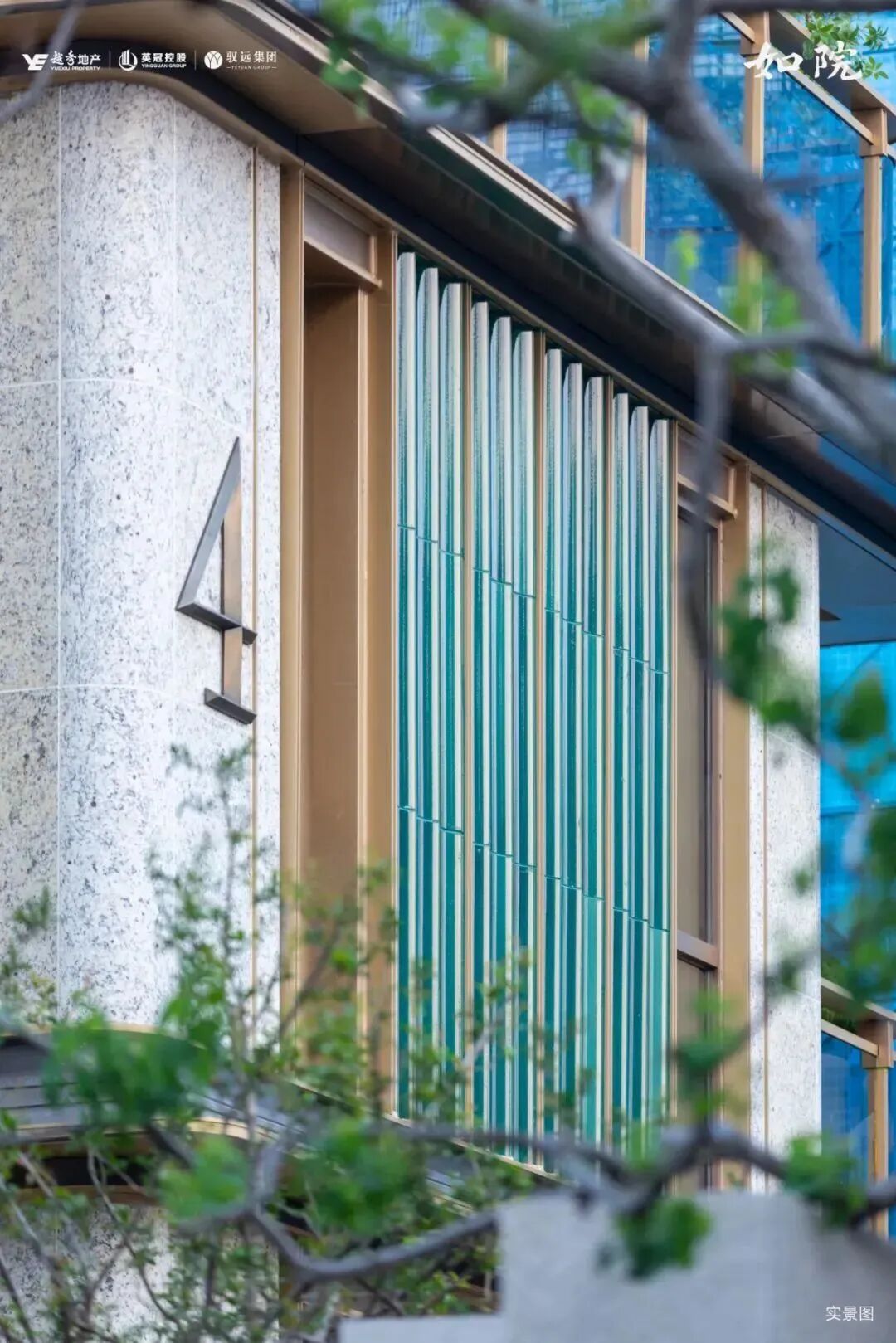 中建·玖上瑯宸的建筑外立面設(shè)計(jì)汲取豫園“金聲玉振”靈感,部分選用約1150℃高溫?zé)贫删暗骆?zhèn)稀有陶板,打造“金鑲玉制”的海派先鋒立面,搭配石材與鋁板,讓室內(nèi)外景致無(wú)界交融。