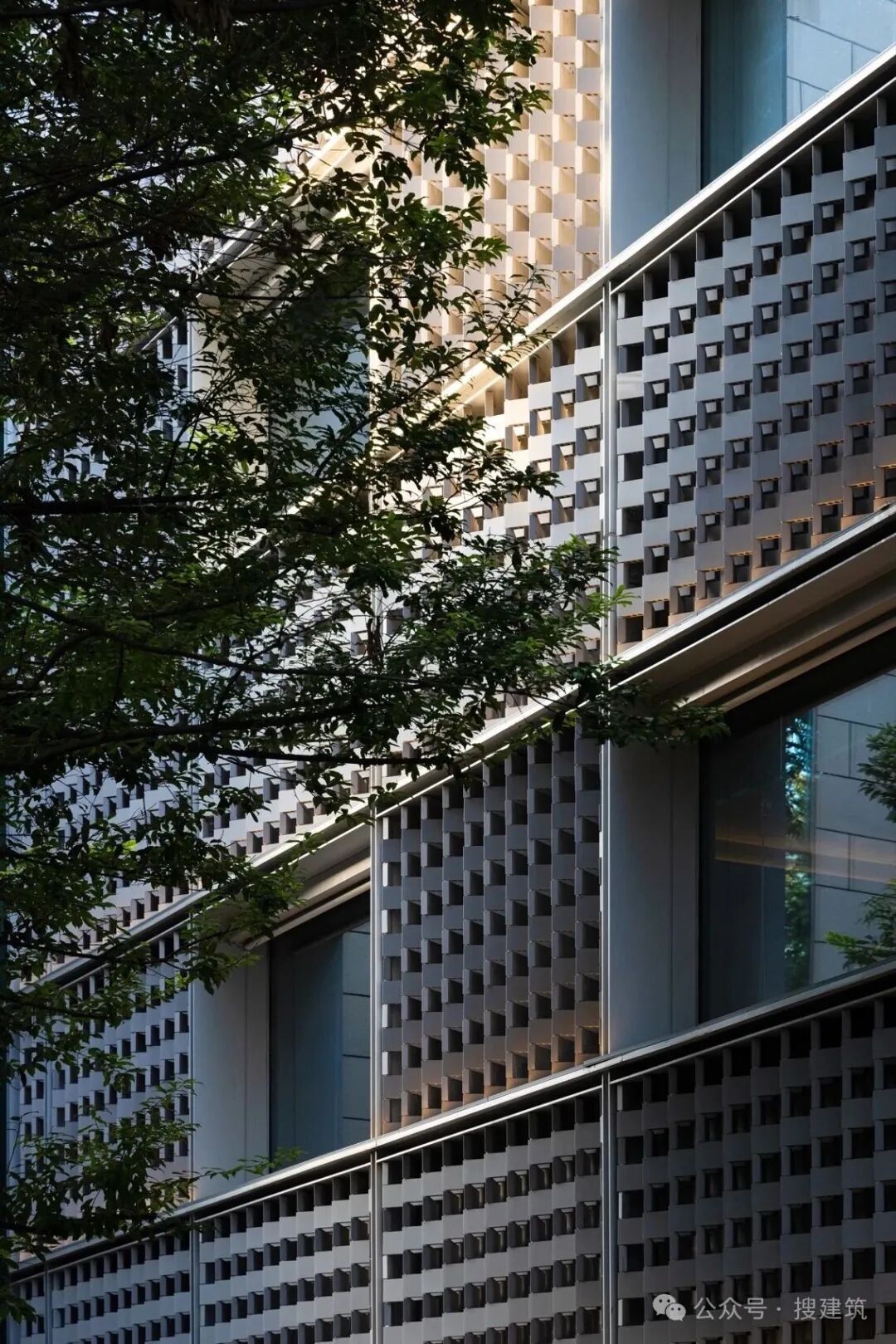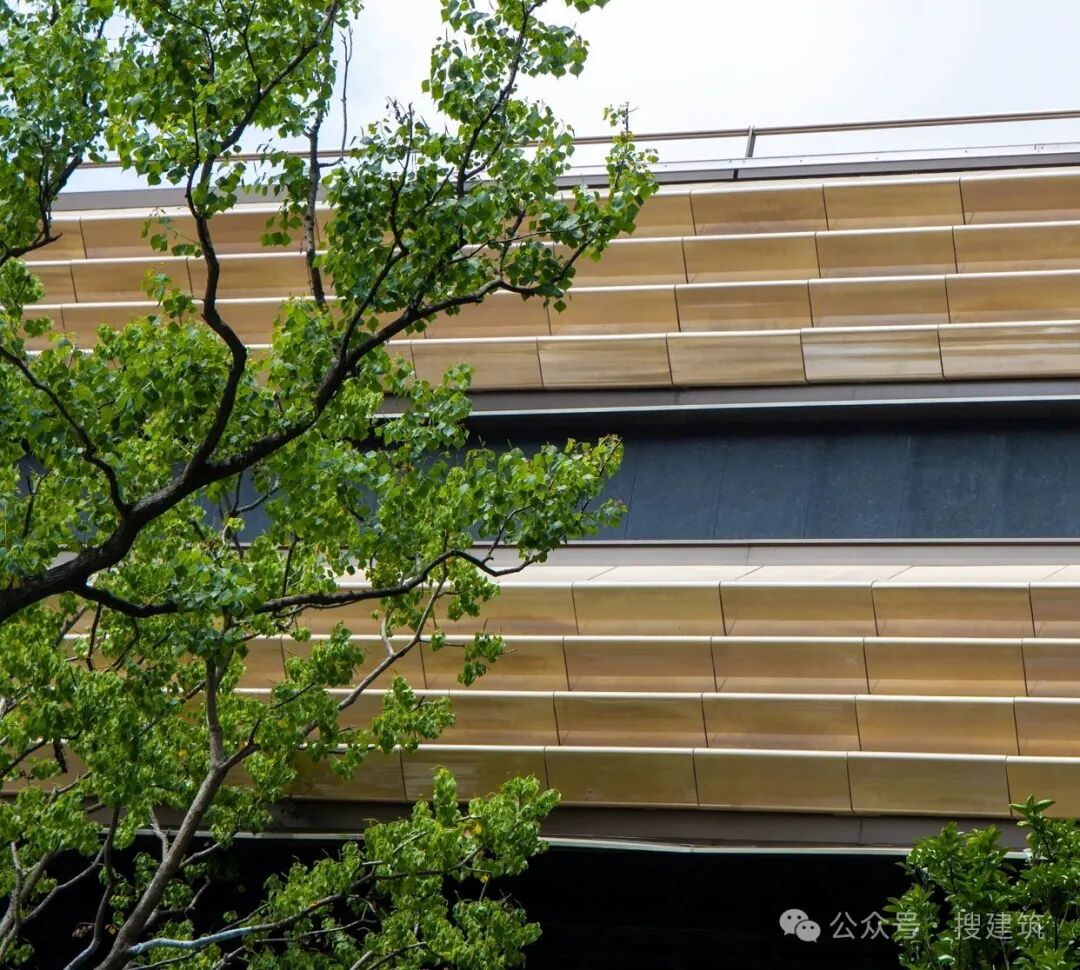 陶板的光影變化,比鋁板更豐富;陶板的質(zhì)感,比石材靈動(dòng)。橫向鑲嵌在外立面的陶板,起到了重要作用,它讓整個(gè)建筑更溫潤(rùn),更靈動(dòng)——它像愛馬仕的斜紋縫線一樣,起到的是點(diǎn)睛之筆的作用。